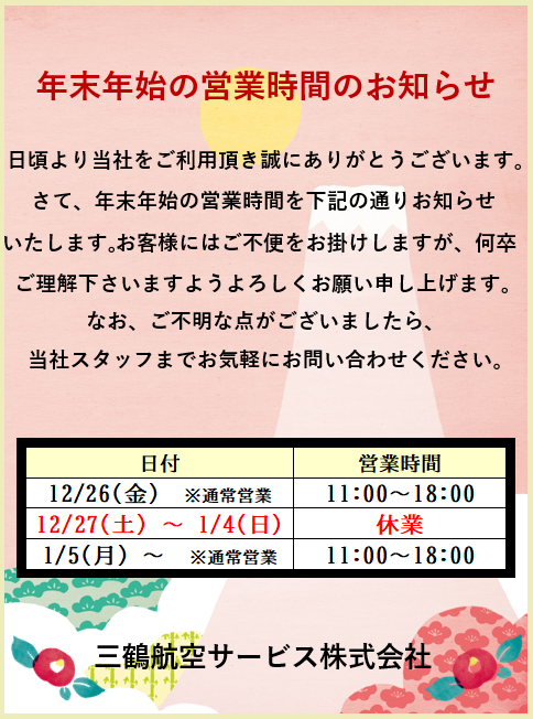 年末年始の営業について