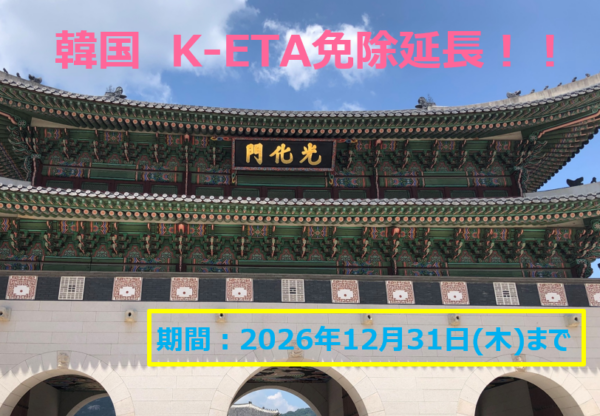 K-ETA免除期間1年延長が決定!! 期間:2026年12月31日(木)まで これで来年も韓国に行きやすくなりま 続きを読む